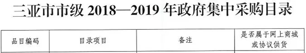 不久前,三亞市財政局發(fā)布《關(guān)于印發(fā)三亞市市級2018—2019年政府集中采購目錄及標(biāo)準(zhǔn)的通知》(以下簡稱《通知》)。