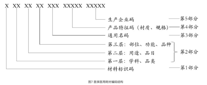 國家醫(yī)保局在《醫(yī)保疾病診斷和手術操作、藥品、醫(yī)療服務項目、醫(yī)用耗材四項信息業(yè)務編碼規(guī)則和方法》,對醫(yī)保醫(yī)用耗材編碼做了展示: