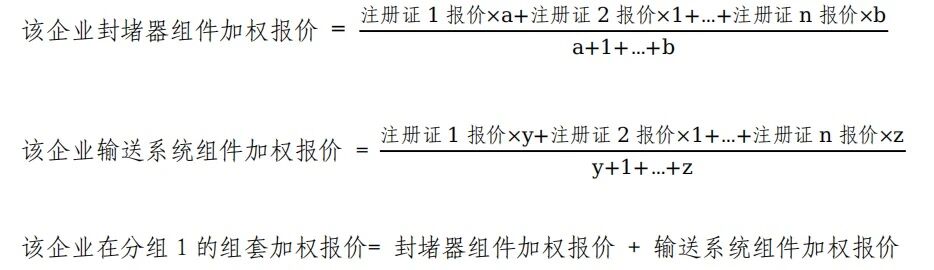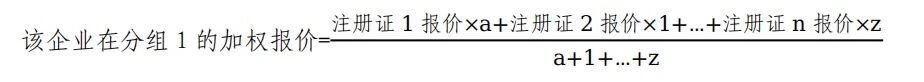 申報企業(yè)區(qū)分組別,按照注冊證分別進行一輪報價,同一分組內(nèi)一張注冊證報一個價格。注冊證報價同組套采購模式一致,加權(quán)報價規(guī)則如下: