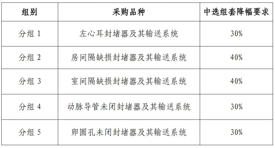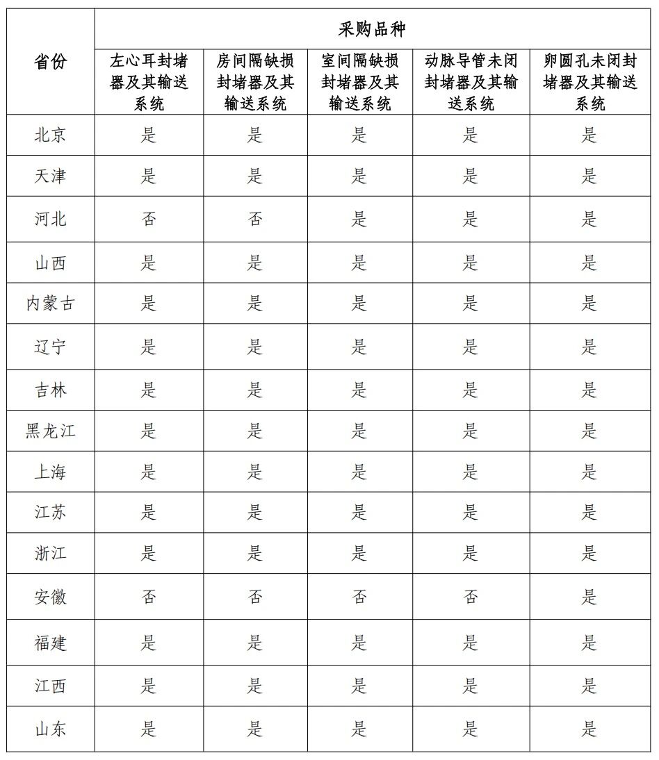 根據(jù)采購文件,本次采購品種為結(jié)構(gòu)心臟病封堵器及其輸送系統(tǒng)類耗材,包含但不限于耗材分類與代碼前7位為 C020301、C020302 開頭的產(chǎn)品,不包含可降解封堵器及其輸送系統(tǒng)。