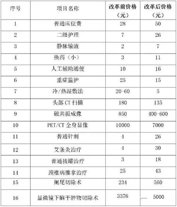 其中,價格上調的有4類250項,包括:綜合醫療服務類(床位、護理等)125項,占28.7%;中醫醫療服務類(針灸、推拿等)96項,占22.1%;臨床手術治療類(闌尾切除術等)26項和臨床物理治療類(放療等)3項,共占6.7%。