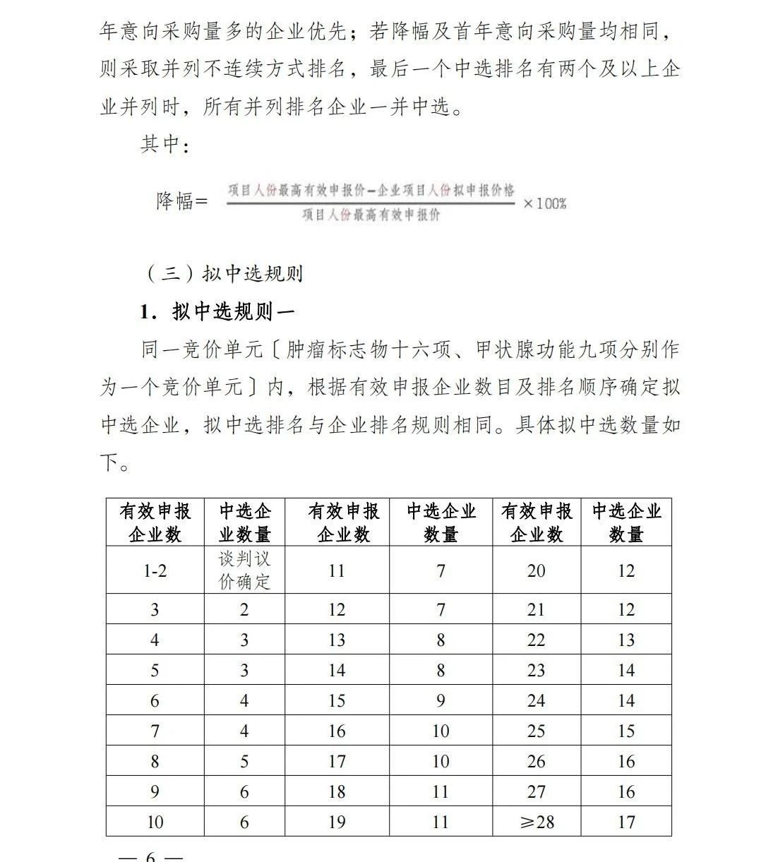 按擬中選規則一未能中選的企業,兩類產品若整體申報降幅高于50%增補為擬中選企業,不受中選采購企業數量限制(具體規則見文末)。