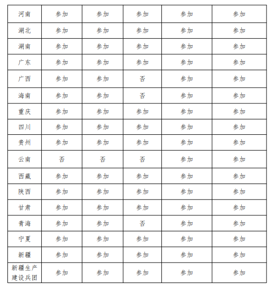 各省參與情況如下: