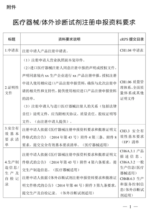 附件:醫療器械/體外診斷試劑注冊申報資料要求