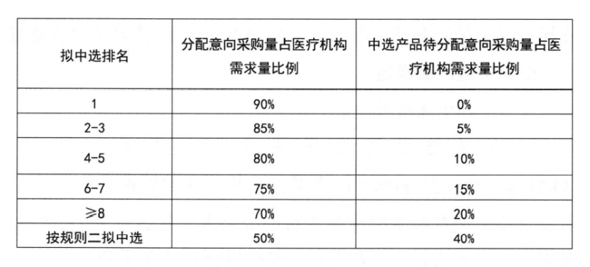 中選產(chǎn)品按中選價(jià)格由低到高排名順序,梯度分配意向采購量。
