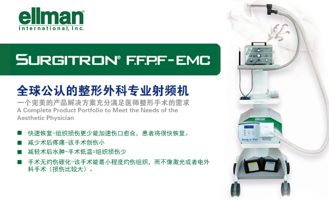 美國ellman EMC型微創射頻電波刀應用了先進的定向無線電波發射的專利技術,發明并產生了具有切割、止血、消融、蒸發、清除、收縮等多種功能和用途的射頻電波刀,將手術的安全性、可控性、精確和功能性提高到全新的水平,開創了許多新的治療方式,是手術治療史上具有劃時代意義的革命。