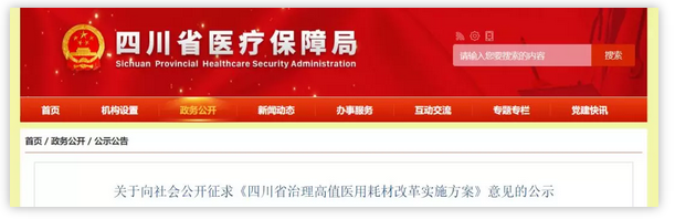 近日,四川省醫(yī)保局發(fā)布《關(guān)于向社會公開征求<四川省治理高值醫(yī)用耗材改革實施方案>意見的公示》(下稱《實施方案》)表示,將探索全省公立醫(yī)院兩票制。