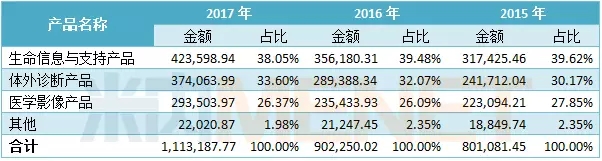 邁瑞醫療被譽為“醫械華為”,作為中國最大、全球領先的醫療器械以及解決方案供應商,在北美、歐洲、亞洲等地區的超過30個國家設有40家境外子公司,國內設有17家子公司,超過40家分支機構,形成龐大的全球化研發、營銷及服務網絡。2017年營收突破百億規模,高達111.74億元。