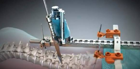 圖為mazor Renaissance系統術中示意圖