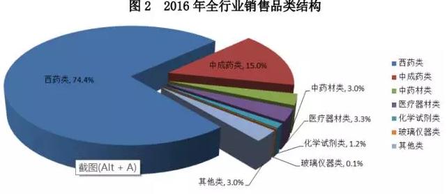 其中,醫療器材類銷售額占七大類醫藥商品銷售總額的3.3%,化學試劑類占比1.2%,包括計生和成人用品的其他類占比3%。