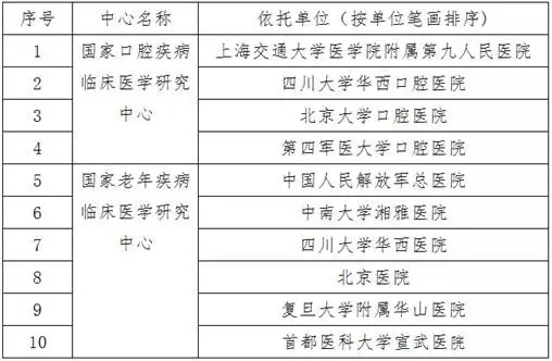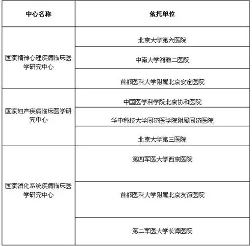 以下為第三批國(guó)家臨床醫(yī)學(xué)研究中心名單
