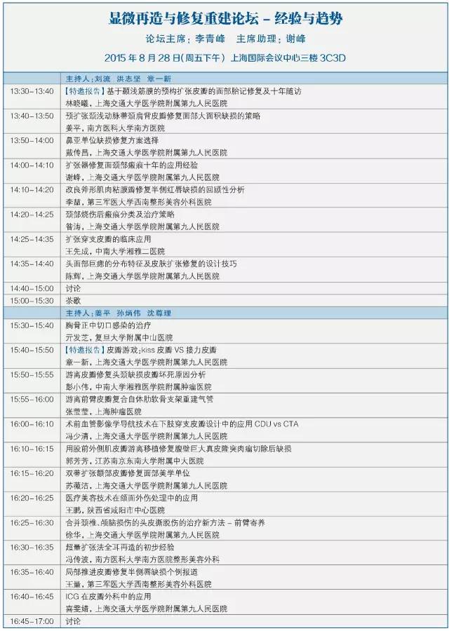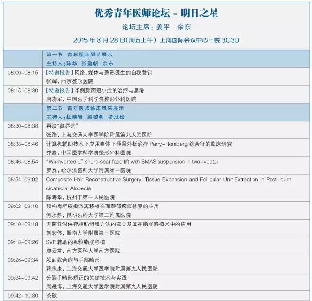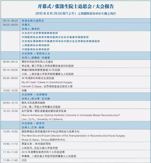 第十二屆中國醫師協會美容與整形醫師大會暨第七屆泛亞地區面部整形與重建外科學會學術大會將于2015年8月28-30日在上海國際會議中心召開,本次會議主要以眼周修復重建新技術、眼瞼美容新進展為主題。