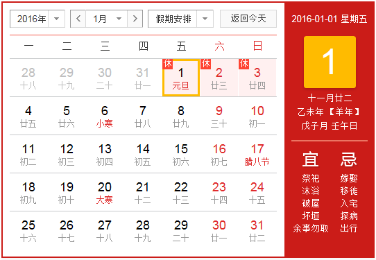 2016年北京華康普美科技有限公司,“元旦節”假期為:1月1日(星期五)至1月3日(星期日)共放假3天,1月4日(星期一)正常上班。