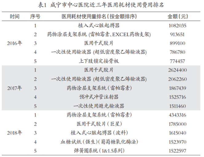 湖北科技學(xué)院和咸寧市醫(yī)保局曾發(fā)布文章,公布這樣一組數(shù)據(jù):以全市最大公立醫(yī)療機(jī)構(gòu)咸寧市中心醫(yī)院為例,2016-2018年醫(yī)用耗材使用總費(fèi)用分別為7099.17萬元、7128.02萬元、11128.33萬元。2017、2018年較2016年分別增長4.06%、56.75%。
