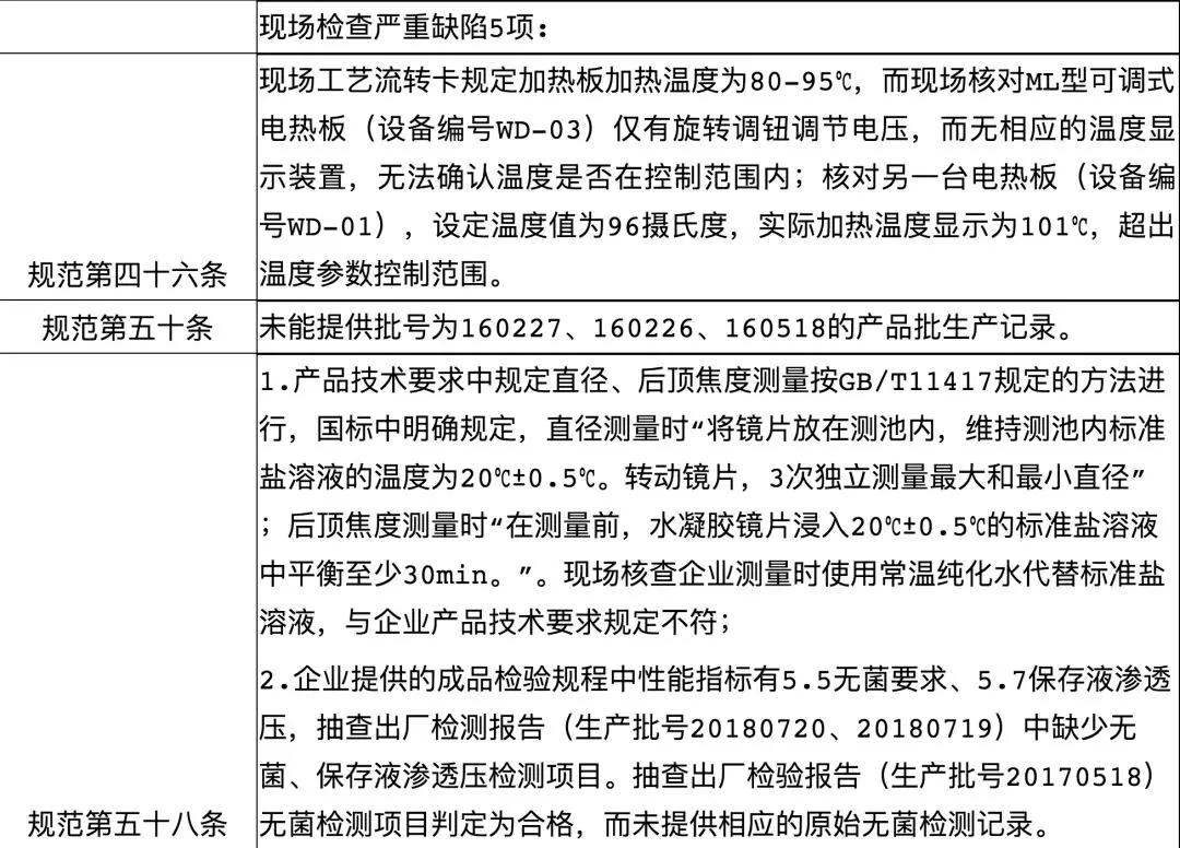 2018年7月24-25日,國家藥品監督管理局對青島紐巴依歐光學制造有限公司進行了飛檢,現場檢查發現5項嚴重缺陷: