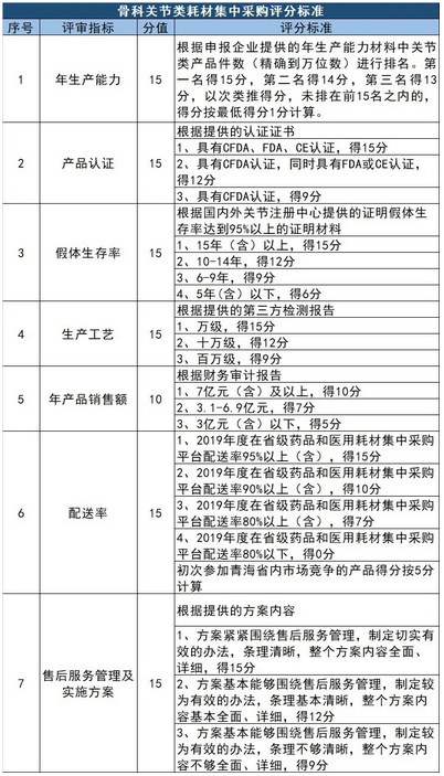 根據此前發布的采購方案顯示,本次青海省帶量采購的主體為省內所有公立醫療機構,品種主要包括人工膝關節(初次置換)、單髁膝關節系統、人工膝關節(翻修型)、人工髖關節(初次置換)等一共29個骨科關節類高值耗材。