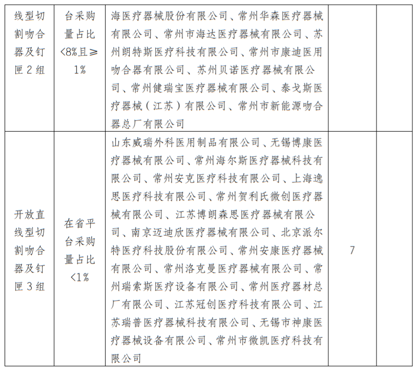 吻合器涉及強生、柯惠、上海逸思、常州市康迪、威海威高富森、重慶邁科唯、重慶邁科唯等械企;