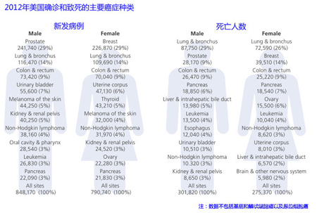 美國癌癥協會公布2012年度全美癌癥數據預估結果