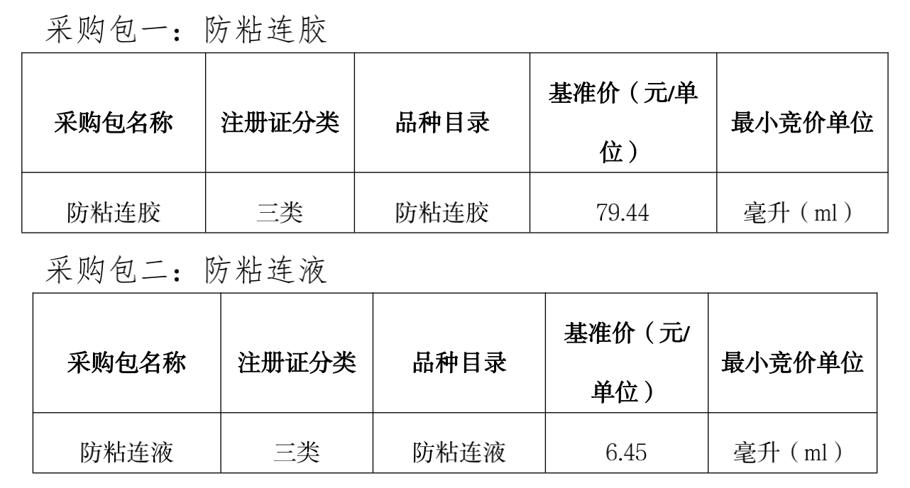 防粘連材料集中帶量采購品種為防粘連膠、防粘連液、防粘連膜。