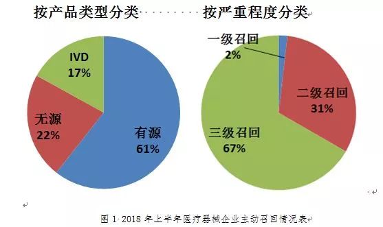 2018年上半年,上海市食品藥品監(jiān)督管理局共發(fā)布了165項(xiàng)醫(yī)療器械企業(yè)主動(dòng)召回信息。按產(chǎn)品種類,有源類產(chǎn)品100項(xiàng)、無(wú)源類產(chǎn)品37項(xiàng)、體外診斷試劑產(chǎn)品28項(xiàng);按產(chǎn)品缺陷嚴(yán)重程度高低,一級(jí)召回3項(xiàng)、二級(jí)召回52項(xiàng)、三級(jí)召回110項(xiàng)。