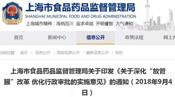 上海市食品藥品監(jiān)督管理局關(guān)于深化“放管服”改革優(yōu)化行政審批的實(shí)施意見