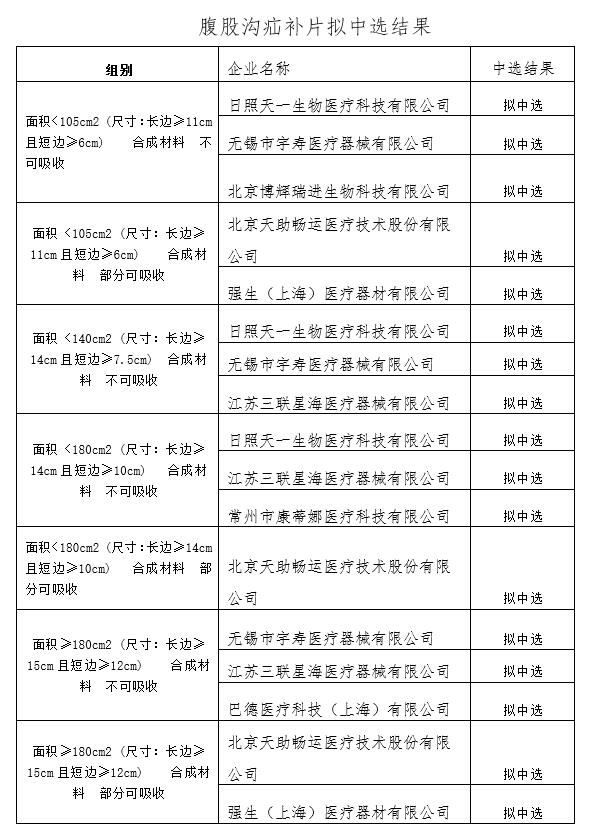 腹股溝疝補片擬中選結果包括強生、巴德等械企。