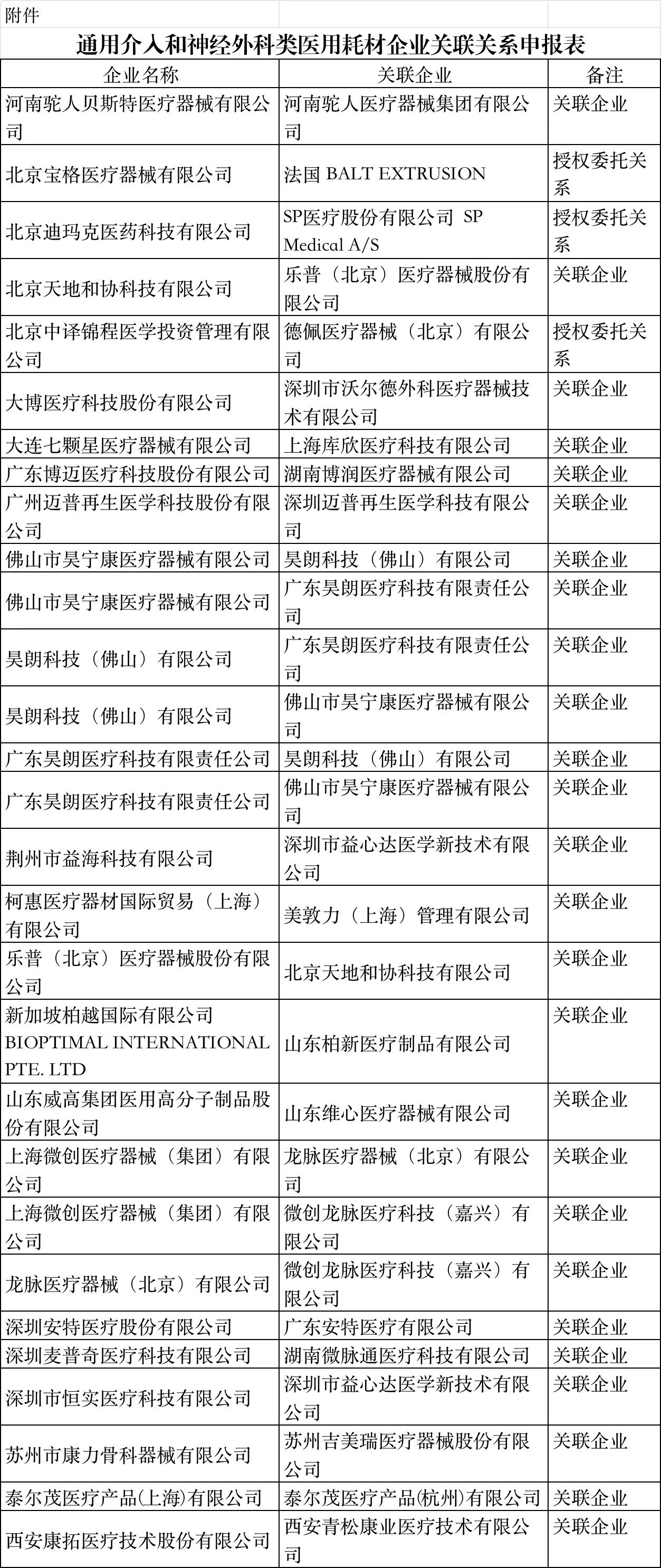 9月8日,省際聯(lián)盟采購(gòu)辦公室還公布了《關(guān)于通用介入和神經(jīng)外科類(lèi)醫(yī)用耗材企業(yè)關(guān)聯(lián)關(guān)系申報(bào)情況的公示》。公示時(shí)間截止2023年9月11日17:00。