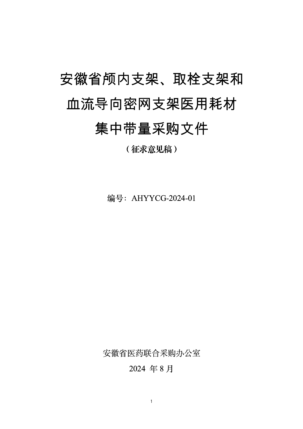 近日,安徽省醫(yī)藥價格和集中采購中心發(fā)布《安徽省顱內(nèi)支架、取栓支架和血流導(dǎo)向密網(wǎng)支架醫(yī)用耗材集中帶量采購文件(征求意見稿)》(以下簡稱《征求意見稿》)(完整內(nèi)容見文末),征求意見時間2024年8月29日至2024年9月4日。