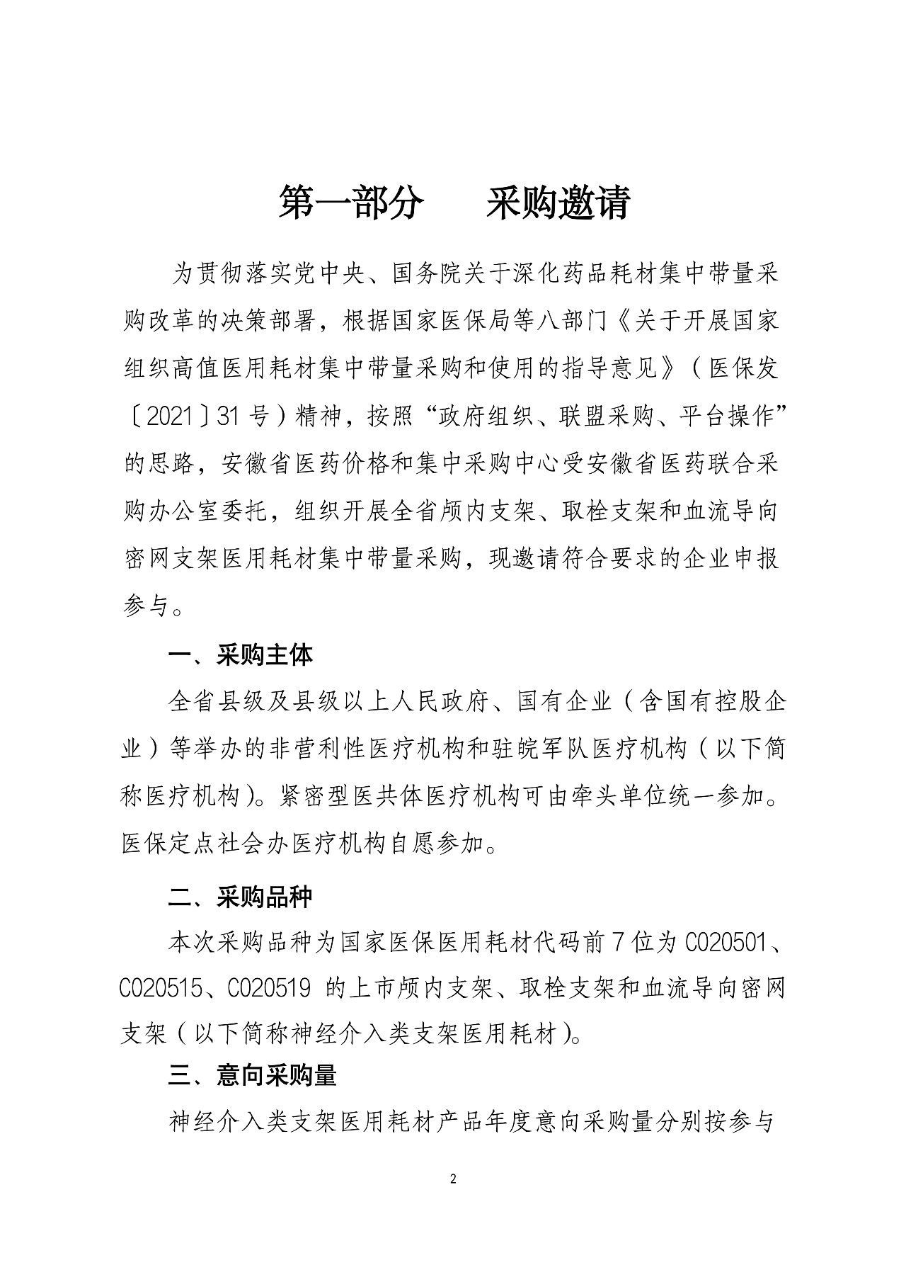 《征求意見稿》顯示,安徽省醫(yī)藥價格和集中采購中心受安徽省醫(yī)藥聯(lián)合采購辦公室委托,組織開展全省顱內(nèi)支架、取栓支架和血流導(dǎo)向密網(wǎng)支架醫(yī)用耗材集中帶量采購,采購周期為2年。