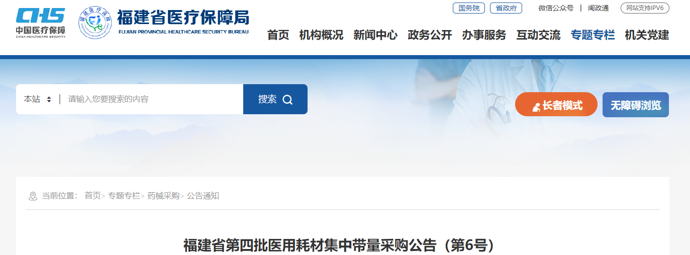 10月13日,福建醫保局發布《福建省第四批醫用耗材集中帶量采購公告(第6號)》(簡稱《公告》)。