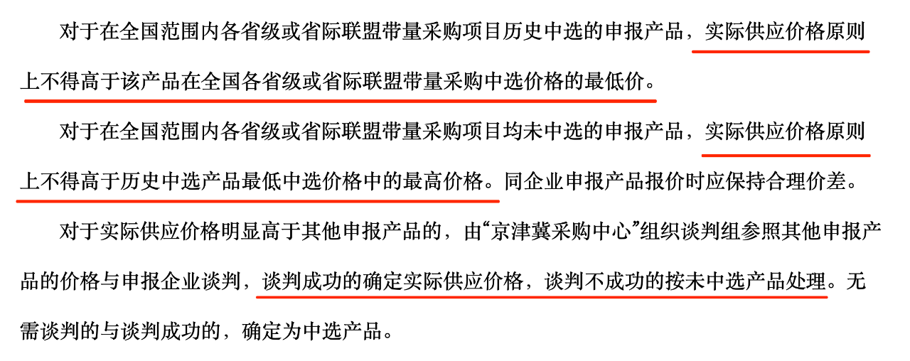 采購周期內,中選企業的非中選產品按不高于本項目該企業同品種最高中選價格掛網的,且不高于其在其他省級或省際聯盟帶量采購中選價格的,可視為中選產品;未中選企業的產品按不高于本項目同品種最高中選價掛網的,在醫療機構考核時不視為非中選產品。