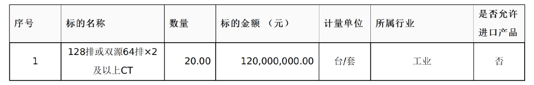 2月12日,中國(guó)政府采購(gòu)網(wǎng)發(fā)布了《福建省2024年64排及以上CT醫(yī)用設(shè)備集采預(yù)公告》《福建省2024年128排或雙源64排×2及以上CT醫(yī)用設(shè)備集采采購(gòu)項(xiàng)目預(yù)公告》,將采購(gòu)30臺(tái)64排及以上CT,預(yù)算金額為9000萬(wàn)元;采購(gòu)20臺(tái)128排或雙源64排×2及以上CT,預(yù)算金額1.2億元。