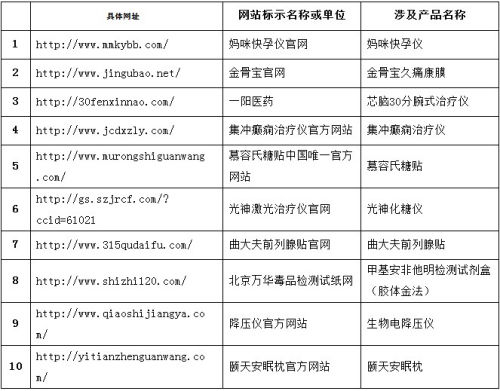 國家食品藥品監督管理總局已將違法網站移送有關部門進行查處。為了保護公眾用藥安全,現將10家違法網站予以曝光。