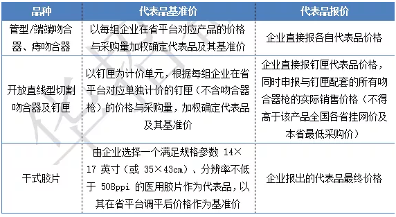 表:吻合器、膠片代表品基準(zhǔn)價(jià)及報(bào)價(jià)標(biāo)準(zhǔn)