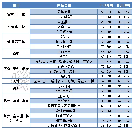 附:江蘇省內(nèi)所有已參與帶量采購(gòu)品種降幅一覽