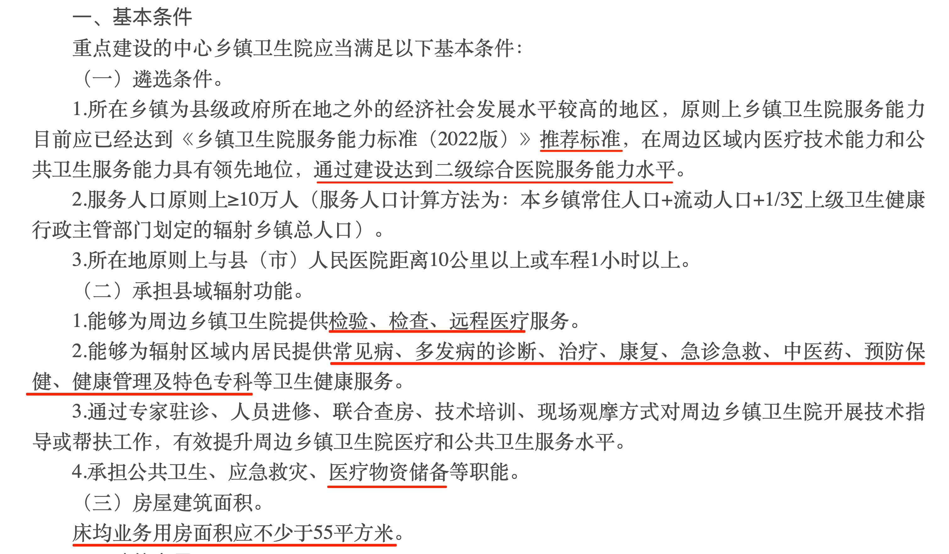 重點建設的中心鄉鎮衛生院應當滿足這些基本條件:
