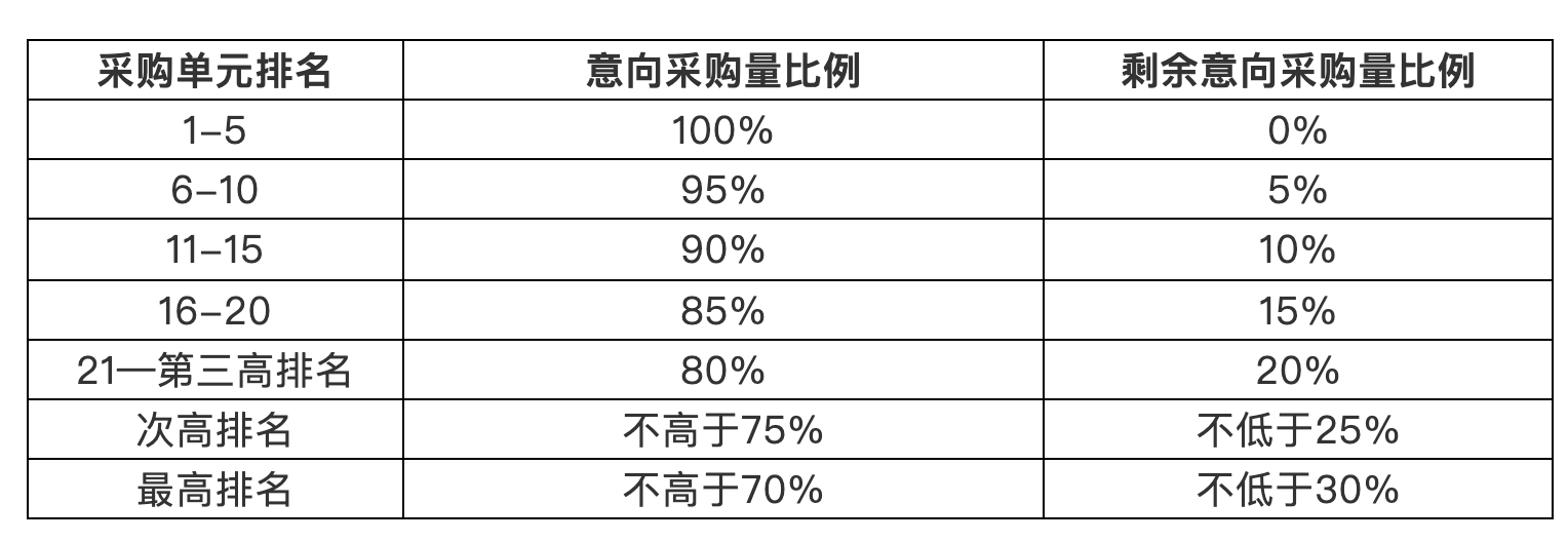 《方案》提到,產品排名和確定意向采購量按產品采購單元擬供應價格由低到高的順序確定排名,申報價最低的為第一名,次低的為第二名,依此類推。當出現供應價格相同的情況,按照以下規則依次確定排名: