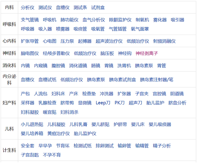 下附:各科室用醫(yī)療器械清單(來源:藥源網(wǎng))