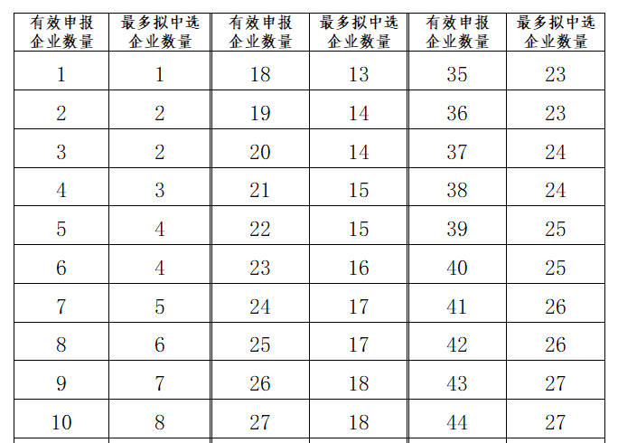 擬中選規則方面,按有效申報價格由低到高的順序確定排名,最多擬中選企業數量詳見下表。