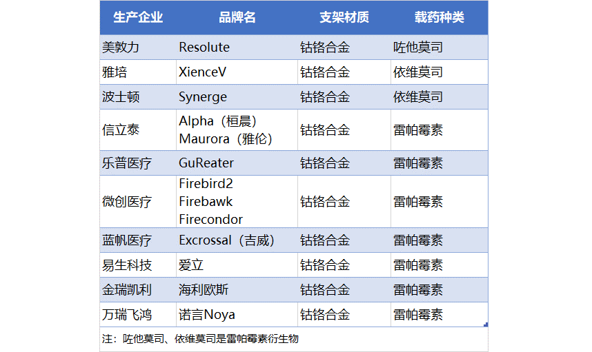 可能參加全國(guó)集采的冠脈支架(不完全統(tǒng)計(jì))