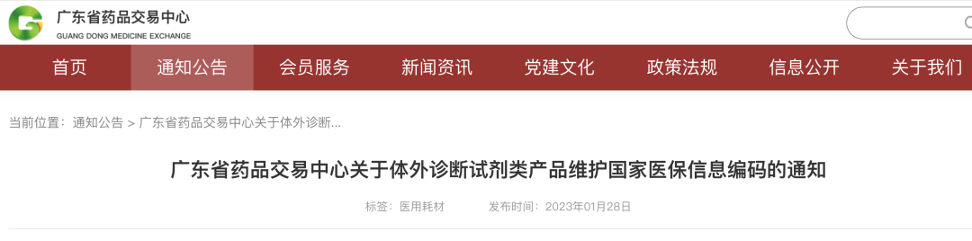 2023年1月28日,廣東省藥品交易中心發(fā)布《關(guān)于體外診斷試劑類產(chǎn)品維護(hù)國(guó)家醫(yī)保信息編碼的通知》(以下簡(jiǎn)稱《通知》),要求體外診斷試劑生產(chǎn)、經(jīng)營(yíng)企業(yè)開(kāi)展體外診斷試劑類相關(guān)產(chǎn)品醫(yī)保編碼信息維護(hù)工作。