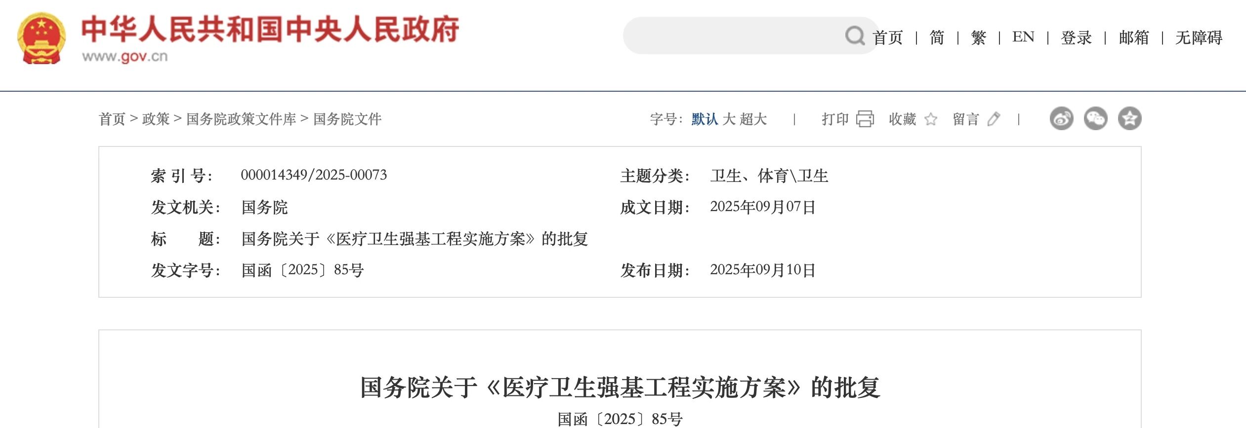 9月10日,據中國政府網消息,國務院批復同意《醫療衛生強基工程實施方案》(簡稱《實施方案》),并附上方案全文。