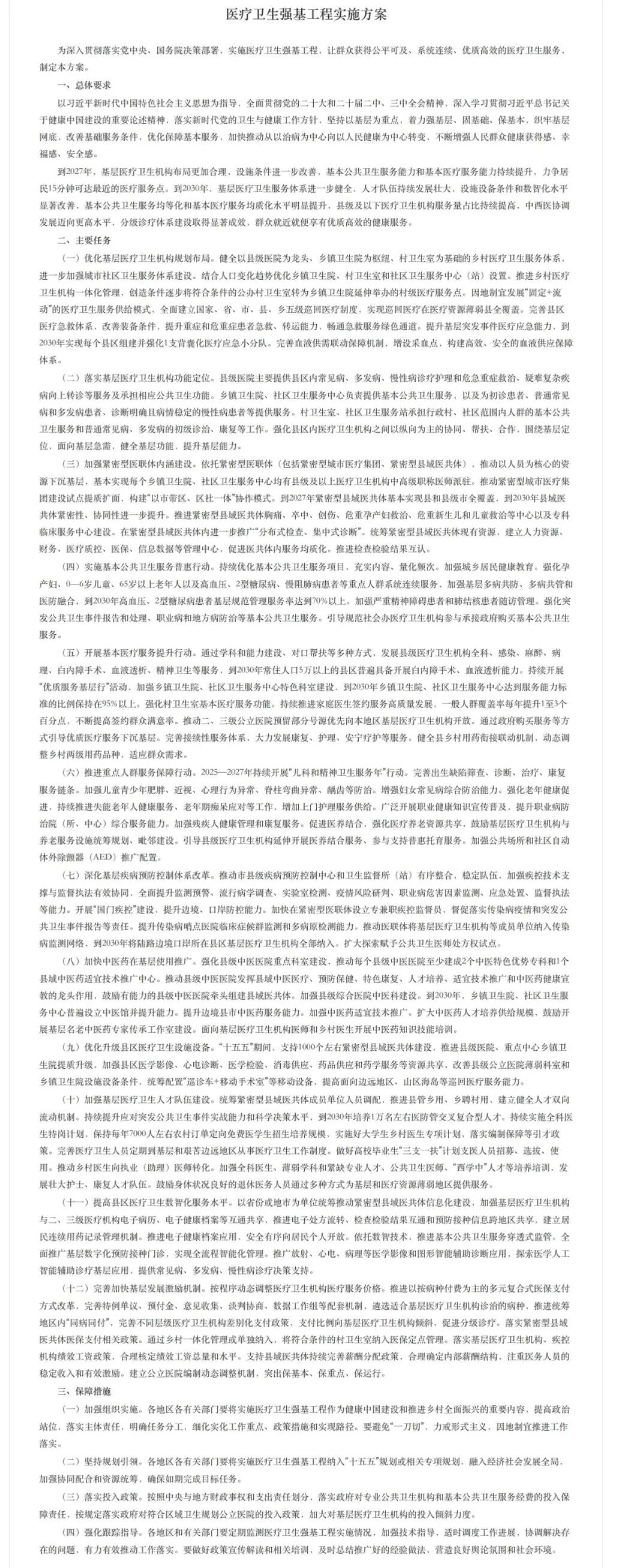 《醫療衛生強基工程實施方案》正式發布
