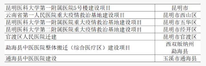 湖南省人民醫院馬王堆院區住院門診醫技綜合樓、益陽市赫山區人民醫院(益陽市第三人民醫院)南院區建設項目、婁底市中心醫院門急診綜合樓和醫技住院綜合樓建設項目及重大疫情救治基地建設項目等醫療項目;