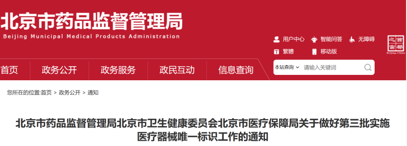 根據上述公告,北京市藥監局進一步明確,執行第三批醫療器械唯一標識要求,同時“鼓勵其他第二類醫療器械實施唯一標識”。