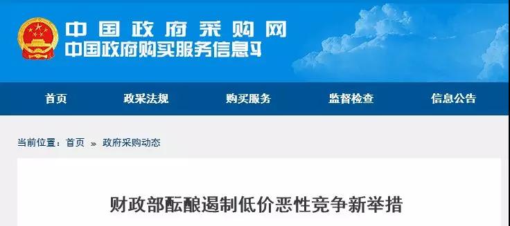 近日,中國政府采購網發布最新通告《財政部醞釀遏制低價惡性競爭新舉措》。