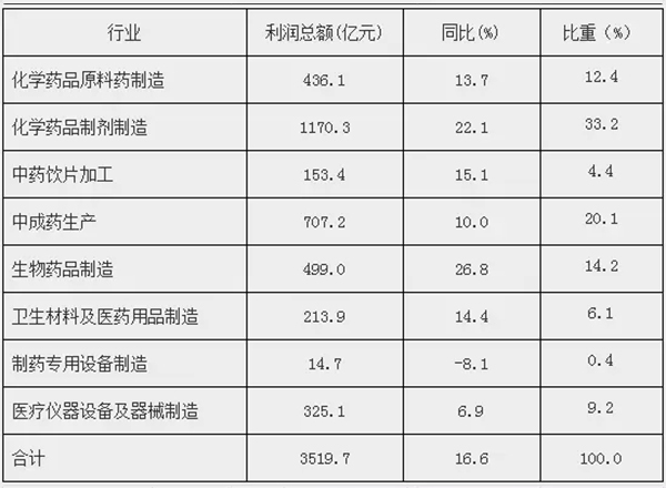 2017年醫(yī)藥產(chǎn)業(yè)分子行業(yè)利潤總額