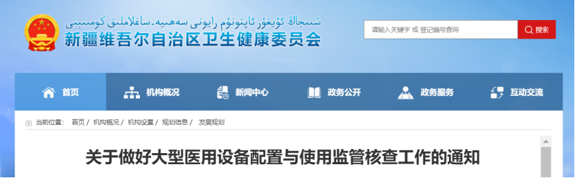 近日,新疆衛健委發布《關于做好大型醫用設備配置與使用監管核查工作的通知》(以下簡稱《通知》),開展醫療機構(含社會辦醫)大型醫用設備配置(更新)與使用監管核查工作。