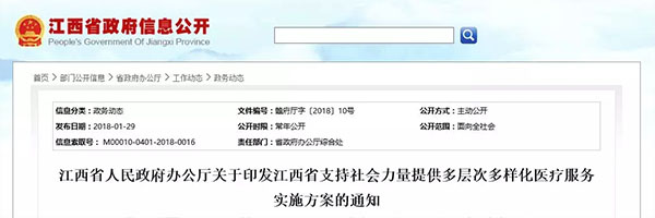 這不,1月23日,江西省人民政府發(fā)布了《江西省支持社會(huì)力量提供多層次多樣化醫(yī)療服務(wù)實(shí)施方案》。其中明確,經(jīng)營不善的公立醫(yī)院可采取改制、托管或公辦民營等形式引入社會(huì)力量。