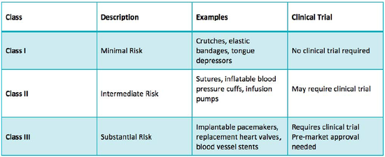 國家對醫療器械按照風險程度實行分類管理:第一類是指風險程度低,實行常規管理可以保證其安全、有效的醫療器械;第二類是指具有中度風險,需要嚴格管理以保證其安全、有效的醫療器械;第三類是指具有較高風險,需要采取特別措施嚴格控制管理以保證其安全、有效的醫療器械。